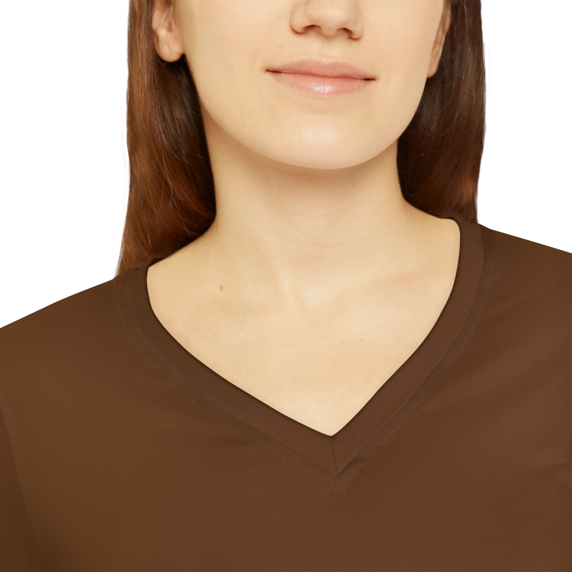 This lightweight long-sleeve V-neck combines breathable stretch knit with a clean, minimalist silhouette so it moves with you from morning coffee to evening walks. The soft, slightly sleek fabric drapes comfortably and keeps layers smooth under jackets or scarves. Thoughtfully finished with reinforced double-needle hems and a printed care label at the collar, it feels crafted rather than throwaway. The deep V and slim sleeves lend a subtly feminine line that suits relaxed weekends, cozy cabin days, or easy everyday layering.